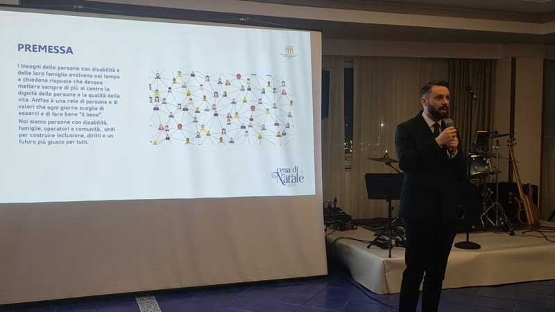 Una serata intensa e partecipata, fatta di abbracci, emozioni, convivialità e solidarietà, che si è trasformata in un momento significativo non solo per lo scambio degli auguri natalizi, ma anche per la raccolta fondi a sostegno del progetto illustrato dal Presidente della Fondazione Anffas, Salvatore Parisi. Nel corso del suo intervento, il Presidente ha spiegato finalità e visione dell’iniziativa.